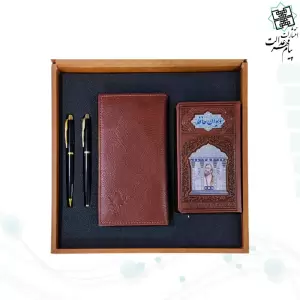 ست دیوان حافظ پالتویی با کیف چرم و خودکار و روان نویس