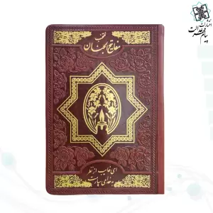پک 2جلدی جیبی قرآن و منتخب مفاتیح داخل رنگی چرم قابدار با پلاک