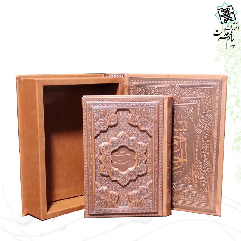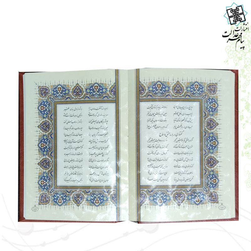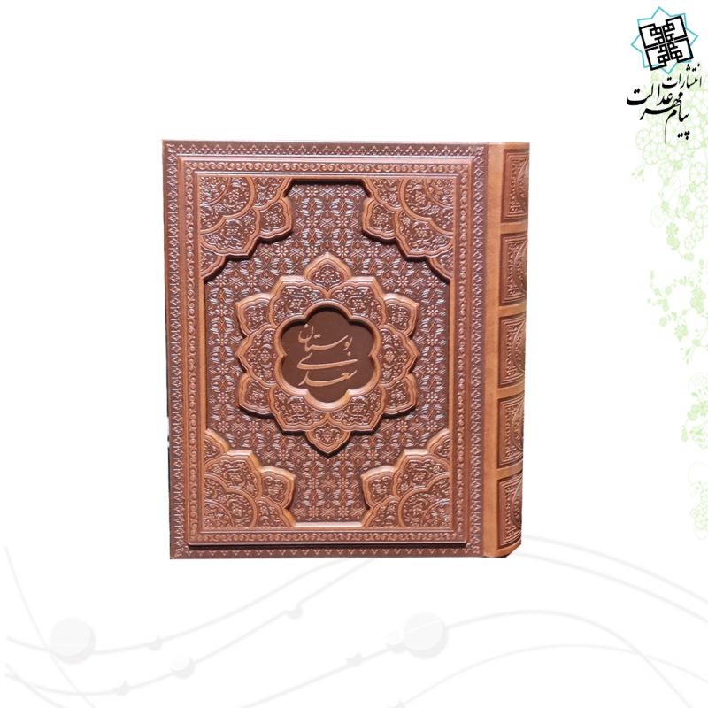 این محصول زیبا و نفیس بوستان از نوع جیبی می باشد , که نوع جلد آن چرم مصنوعی قابدار برجسته با طراحی بسیار زیبایست , نوع کاغذ این کتاب معطر با کیفیت خوبی است . این محصول زیبا شامل 416 صفحه و با ابعاد (13 در 17.5) و ست کامل این محصول با ابعاد (18 در 20.5) با وزنی معادل 1077گرم می باشد .