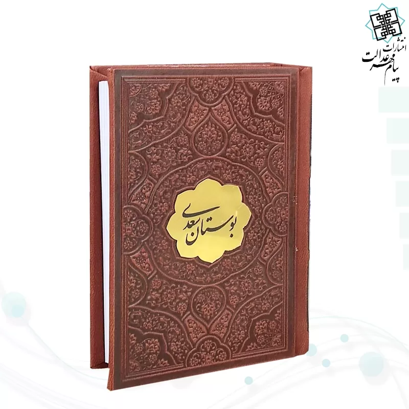 کتاب بوستان سعدی، اثری ماندگار از شاعر بزرگ ایران، در قطع نیم جیبی با جلد چرمی نفیس طراحی شده است.