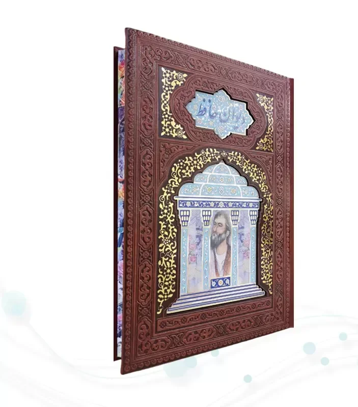 دیوان حافظ وزیری تحریر با جلد چرمی پلاک‌دار و لب‌چاپ، نسخه‌ای شکیل و زیبا بدون قاب.