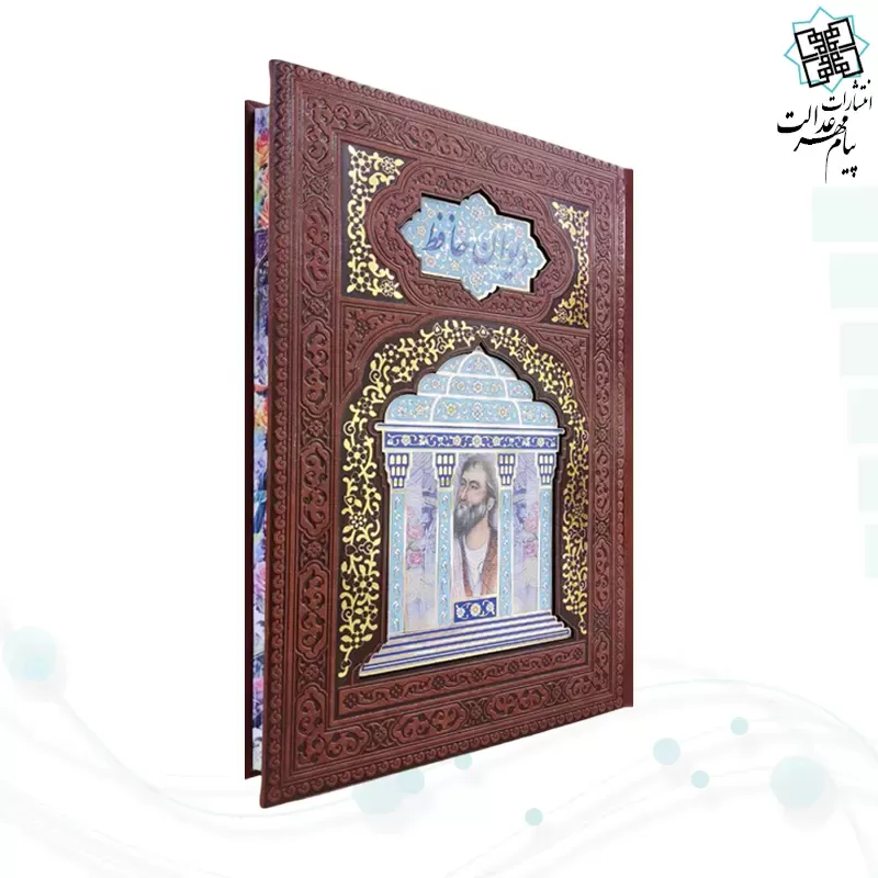 دیوان حافظ وزیری تحریر با جلد چرمی پلاکدار و لبچاپ، نسخهای شکیل و زیبا بدون قاب.
