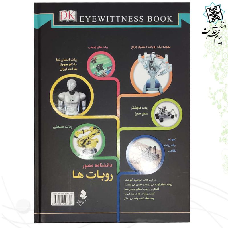 این محصول زیبا کتاب دانشنامه مصور (روبات ها) می باشد , که نوع جلد آن سلفون سخت با طراحی بسیار زیبایست , نوع کاغذ این کتاب از جنس گلاسه با کیفیت خوبی است . این محصول زیبا شامل 72 صفحه و با ابعاد (21.5 در 30) با وزنی معادل 480 گرم می باشد .