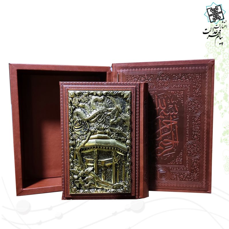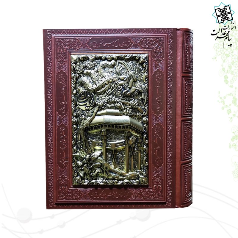 دیوان حافظ جیبی گلاسه چرم جعبه دار نفیس با پلاک فلزی طرح مس مقبره