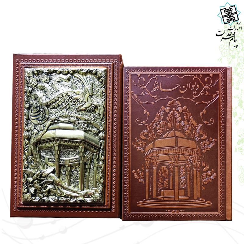 دیوان حافظ نفیس جیبی با جلد چرمی طرح مس، کاغذ گلاسه و فالنامه در هر صفحه، همراه با قاب کشویی مقاوم، انتخابی ارزشمند برای علاقهمندان به شعر و ادب فارسی.