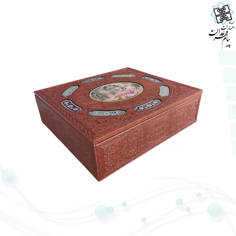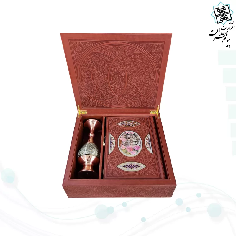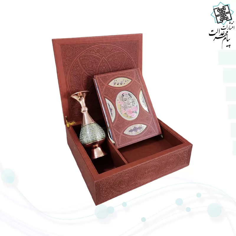 این محصول زیبا و نفیس حافظ وزیری تمام مصور با گلدان خاتم میباشد ,دارای قاب چرمی پلاک رنگی با جعبه لپتاپی میباشد . این کتاب زیبا شامل 584 صفحه با ابعاد (18*24) با وزنی معادل 3830 گرم می باشد