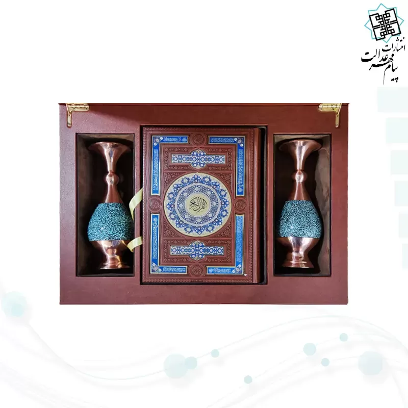 جلد چرمی زیبا و طراحی شکیل این قرآن در کنار دو گلدان فیروزهکوب هنری ترکیبی بینظیر از معنویت و هنر ایرانی را ایجاد کرده است. این مجموعه در یک بستهبندی نفیس و کادویی عرضه میشود و انتخابی ایدهآل برای هدیههای مذهبی، جهیزیه، مناسبتهای خاص و یادبودهای ارزشمند محسوب میگردد.