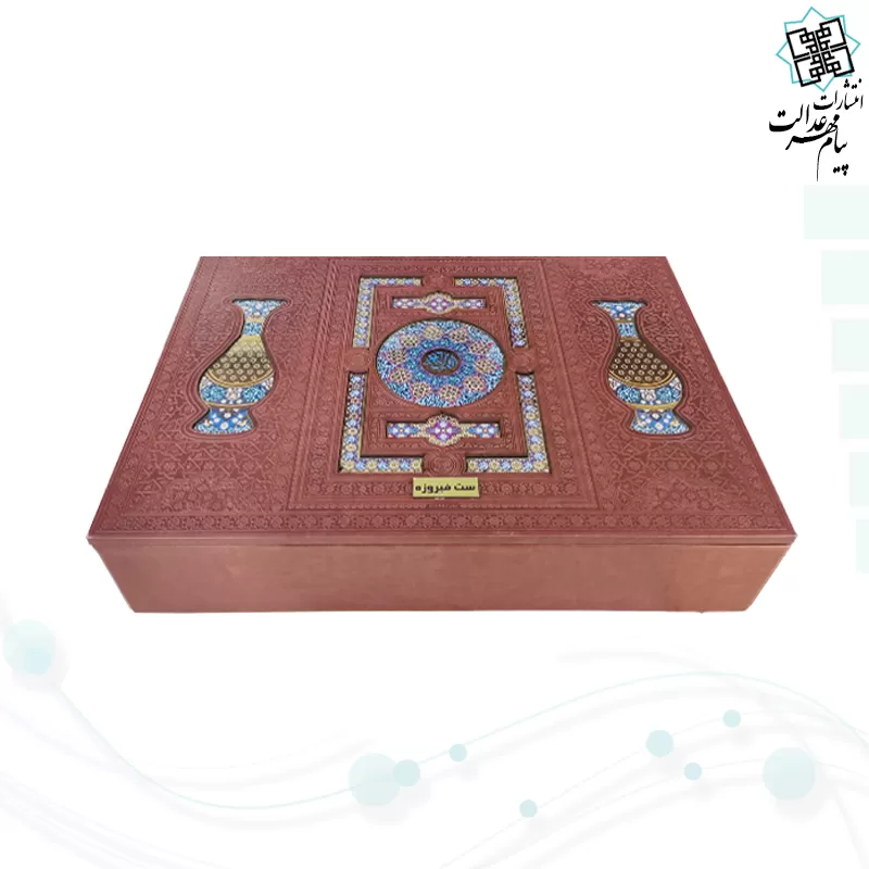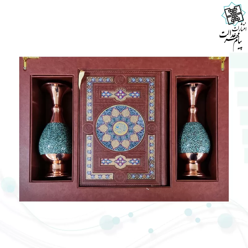 ست قرآن وزیری چرم جعبه دار نفیس به همراه 2گلدان فیروزه