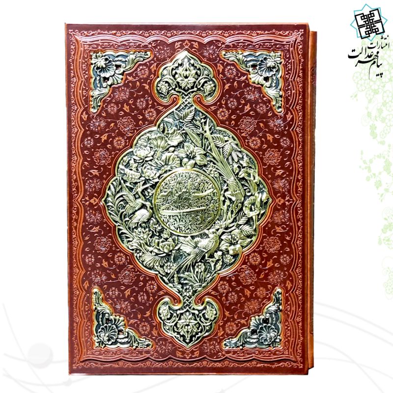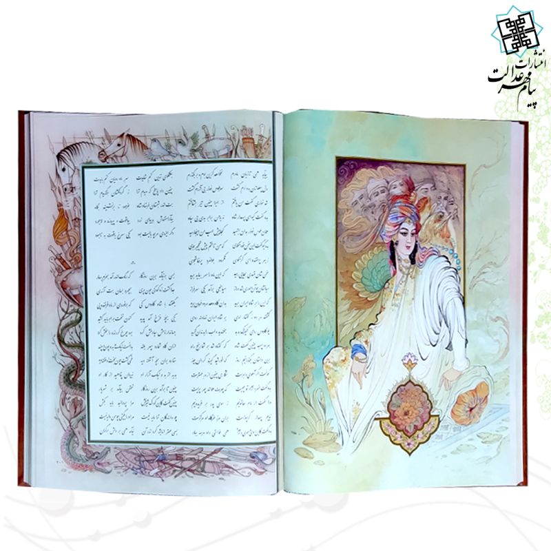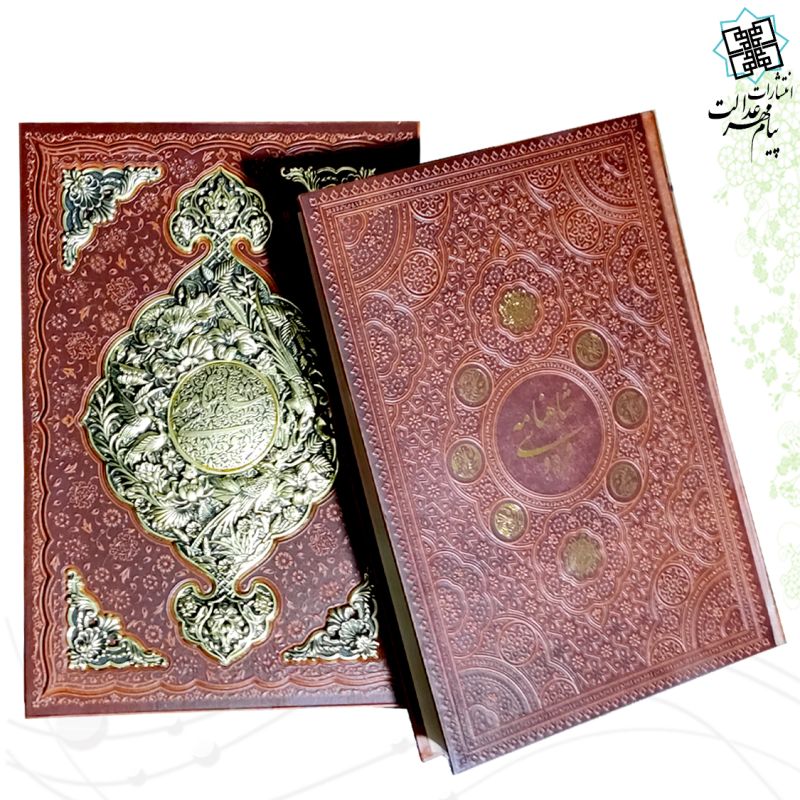 این محصول زیبا و نفیس شاهنامه از نوع رحلی می باشد , که نوع جلد آن چرم مصنوعی قابدار طرح مس با طراحی بسیار زیبا است , نوع کاغذ این محصول از جنس گلاسه با کیفیت خوبی است . این کتاب زیبا شامل 456 صفحه و ابعاد (24.5 در 34) و ست کامل محصول با ابعاد (25.5 در 35) با وزنی معادل 3693 گرم می باشد .