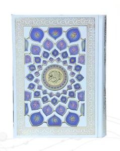 این محصول زیبا و نفیس قرآن کریم از نوع وزیری می باشد , که نوع جلد آن گالینگور سفید لیزری برشی پلاک اسماء الحسنی با طراحی بسیار زیبا است , نوع کاغذ این محصول صفحات اول از جنس تحریر با کیفیت خوبی است . این کتاب زیبا شامل 604 صفحه و ابعاد (17.5 در 24) با وزنی معادل 1125 گرم می باشد .