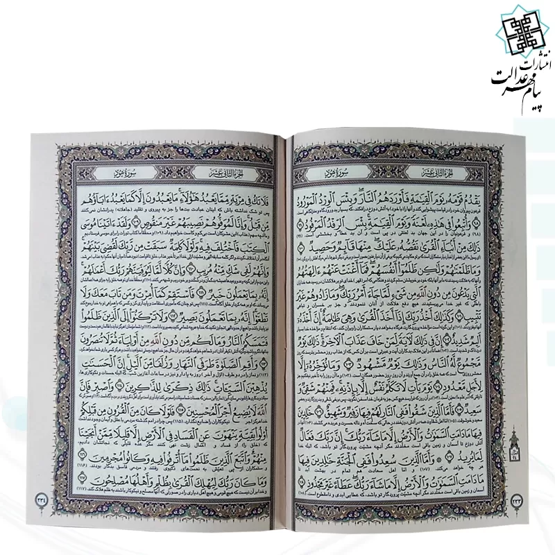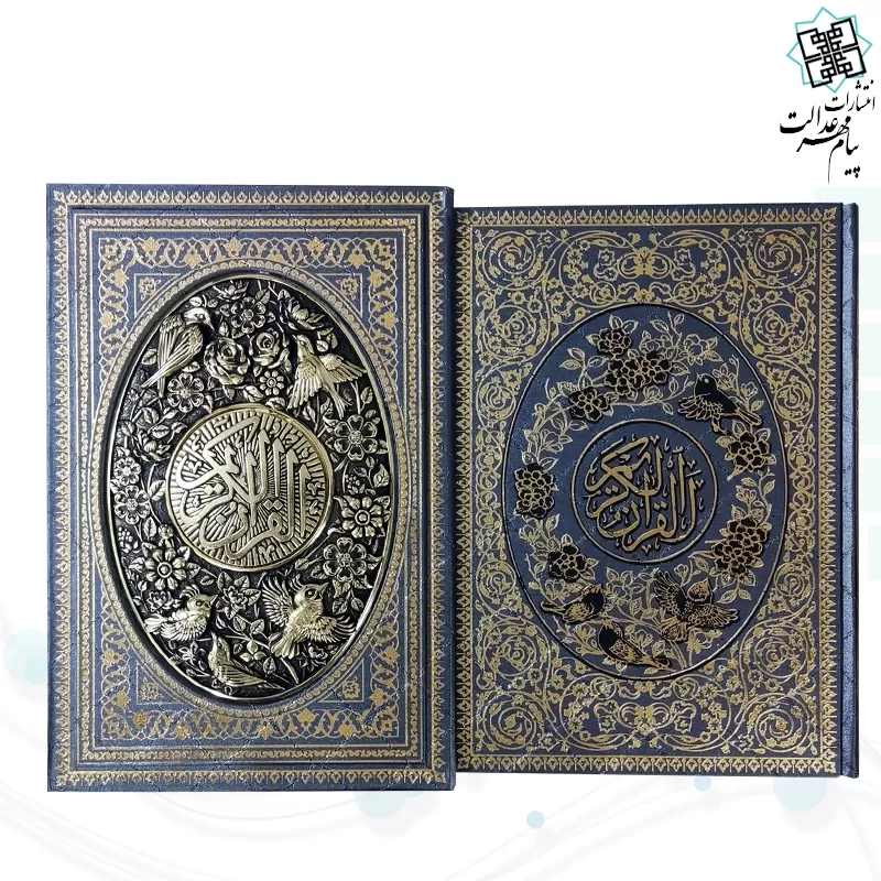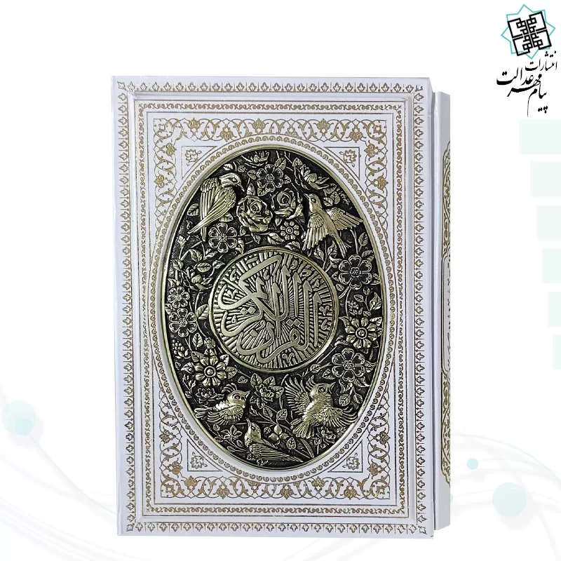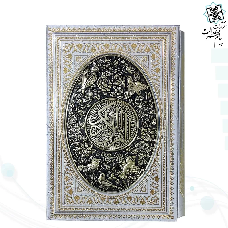 این محصول زیبا قرآن کریم  از نوع وزیری می باشد , که نوع جلد آن گالینگور سفید به همراه قاب کشویی باز شو گالینگور سفید طرح مسی با طراحی بسیار زیبا است , نوع کاغذ این محصول از جنس تحریر با کیفیت خوبی است . این کتاب زیبا شامل 604 صفحه و ابعاد (17.5 در 24) و ست کامل این محصول زیبا با ابعاد (18 در 25) با وزنی معادل 1.548 گرم می باشد .