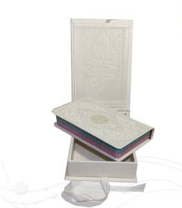 این محصول زیبا و نفیس قرآن کریم از نوع پالتویی می باشد , که نوع جلد آن چرم مصنوعی با طراحی بسیار زیبا و به صورت جعبه لبتاپی باز شو است , نوع کاغذ این کتاب نفیس از جنس تحریر صفحه رنگی با کیفیت خوبی است . این کتاب زیبا شامل 604 صفحه و با ابعاد (9 در 15.5) و جعبه کامل این ست در ابعاد (11.5 در 18) و پهنای 4 سانتی متر با وزنی معادل 459 گرم می باشد .