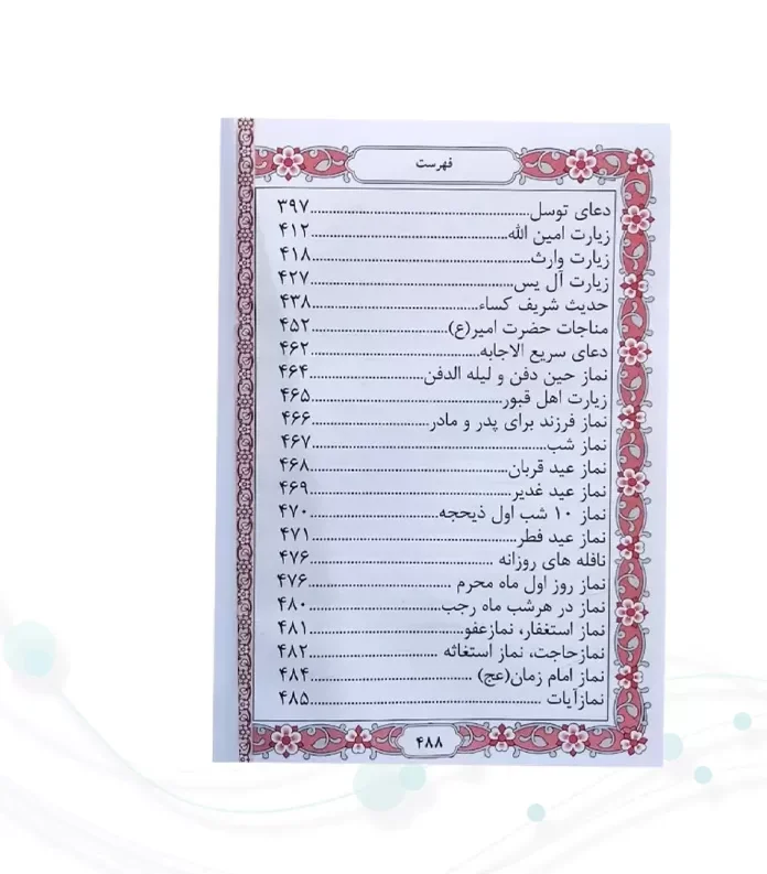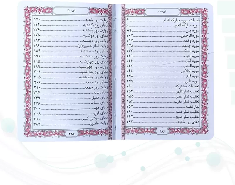 این نسخه شامل دعاهای پربرکت و پرخوانندهای همچون دعای کمیل، توسل، زیارت عاشورا، دعای فرج و دیگر ادعیه منتخب بوده و در قطع نیم جیبی تهیه شده است که به راحتی قابل حمل در کیف یا جیب میباشد.