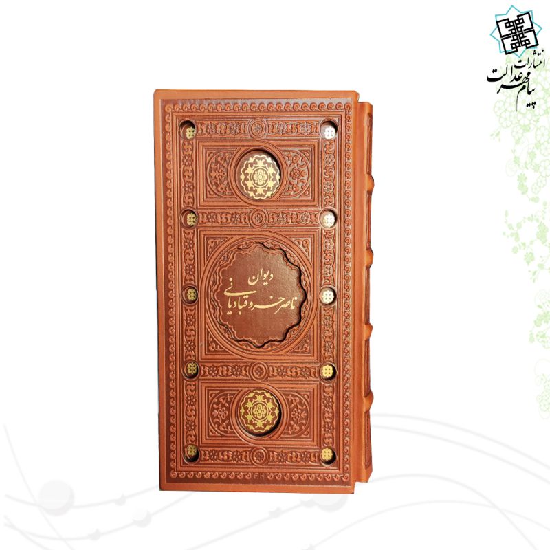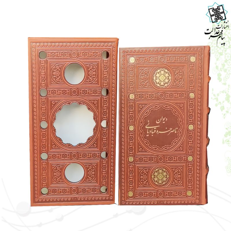 این محصول زیبا و شیک دیوان ناصر خسرو قبادیانی از نوع رقعی پالتویی می باشد , که نوع جلد آن چرم مصنوعی به همراه قاب کشویی باز شو چرم مصنوعی لیزری برشی با طراحی بسیار زیبایست , نوع کاغذ این کتاب تحریر با کیفیت خوبی است . این محصول زیبا شامل 552 صفحه و با ابعاد (12.5 در 23) و ست کامل این محصول با ابعاد (13 در 24) با وزنی معادل 720 گرم می باشد .