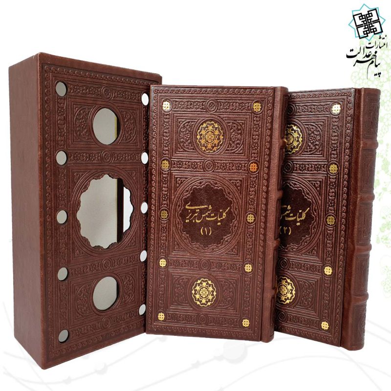 محصول زیبا و نفیس 2 جلدی کلیات شمس تبریزی از نوع رقعی پالتویی می باشد , که نوع جلد آن چرم مصنوعی به همراه قاب کشویی باز شو چرم مصنوعی برشی لیزری با طراحی بسیار شیک , نوع کاغذ این کتاب از جنس تحریر با کیفیت خوبی است . این محصول زیبا شامل 1724 صفحه و با ابعاد (23 در 23) و ست کامل این محصول زیبا با بعاد (13.5 در 24) با وزنی معادل 1.423 گرم می باشد .
