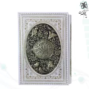 قرآن وزیری تحریر گالینگور سفید قابدار کشویی پلاک فلزی طرح مس