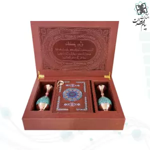 ست قرآن وزیری چرم جعبه دار نفیس به همراه 2گلدان فیروزه