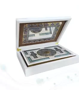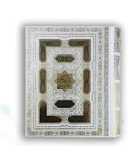 قرآن وزیری بدون ترجمه گلاسه گالینگور سفید عروس جعبه دار پلاک رنگی با آینه نفیس کادویی